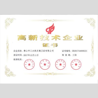 獎 項:科技創新貢獻突出企業-2017年首次認定高新技術企業