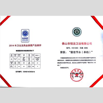 獎(jiǎng) 項(xiàng):H0129D馬桶 2014年衛(wèi)生潔具坐便器產(chǎn)品測(cè)評(píng) 最佳節(jié)水(單檔)